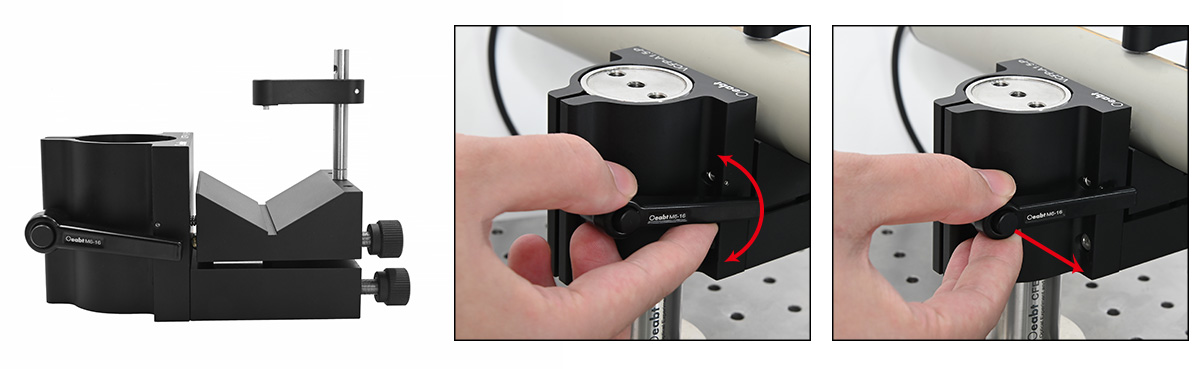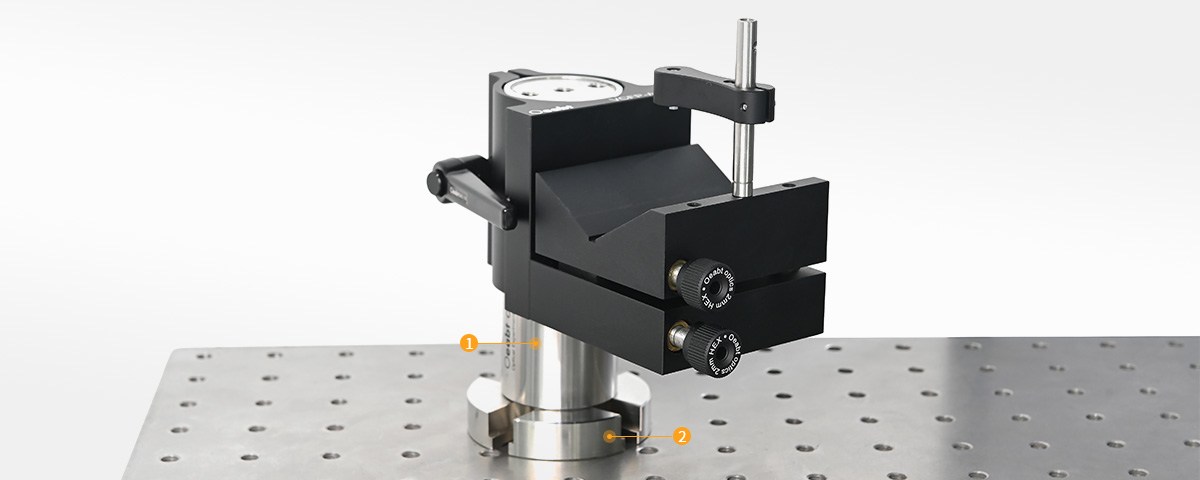 V形夾具安裝座采用手柄驅(qū)動的夾持機制,可將圓柱形器件穩(wěn)固安裝至?1.5 英寸接桿,該安裝座兼容?6.5~51.9 mm的圓柱形元件。