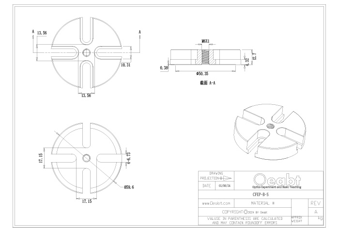 ? 不銹鋼底座:303實(shí)心制成,CFJP-B-S兼容?25mm或?1英寸接桿;CFEP-B-S可安裝?1.5英寸接桿; 可用M6柱頭螺絲的間隙槽可以將其安裝到面包板或光學(xué)平臺(tái)上;