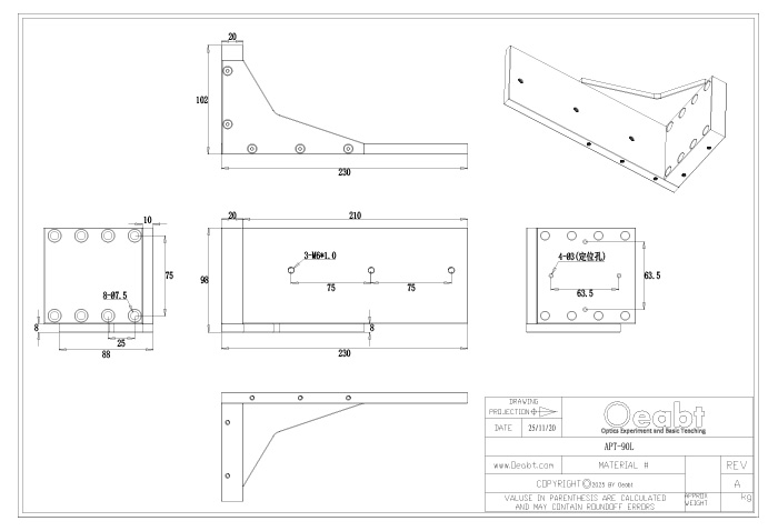 底板:M6*8處(沉頭孔);側(cè)板:M6*3處、?3mm*2處(定位孔) |