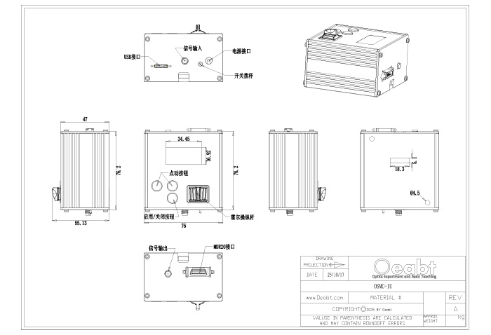 注*:最高、最低運動速度及點動距取決于運動控制器的脈沖頻率及設定,因此上述*號標注參數(shù),均為采用Oeabt? O‘motion 四軸運動控制系統(tǒng)下的測試結(jié)果。 |