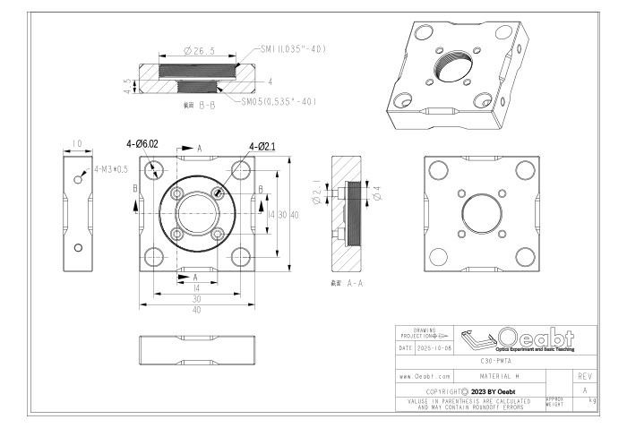 ? 沉頭孔用于PMT的連接,附帶4顆M2柱頭螺絲安裝;