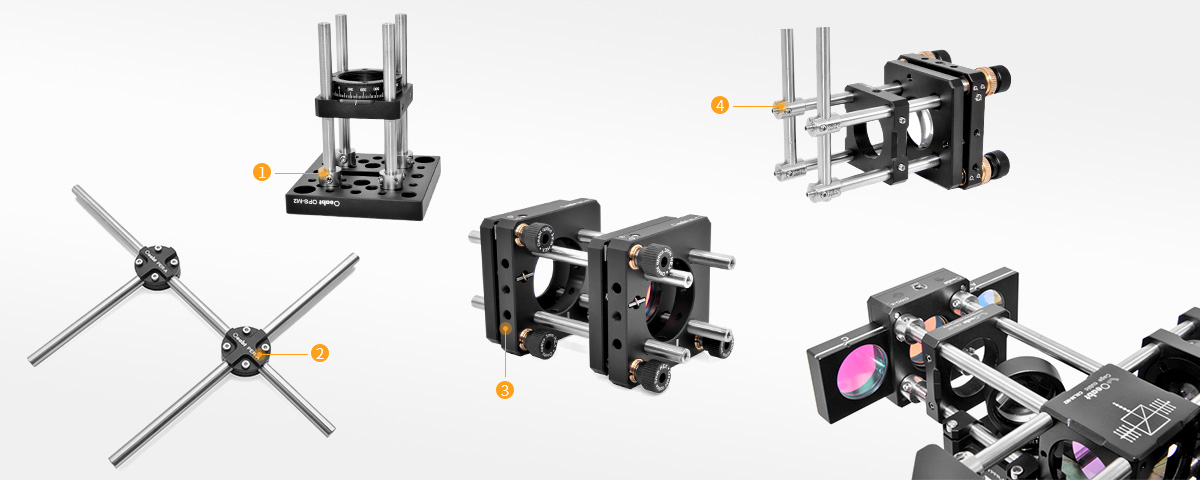 ? ? ? Oeabt的籠式系統(tǒng)提供不同的可用于籠式共軸系統(tǒng)的配件和轉接件,可通過安裝接桿或透鏡套管,可以將籠式系統(tǒng)集成到光學設備中去。