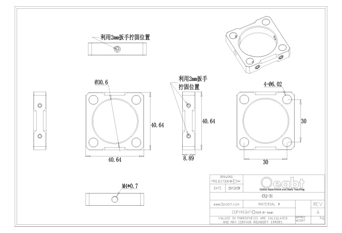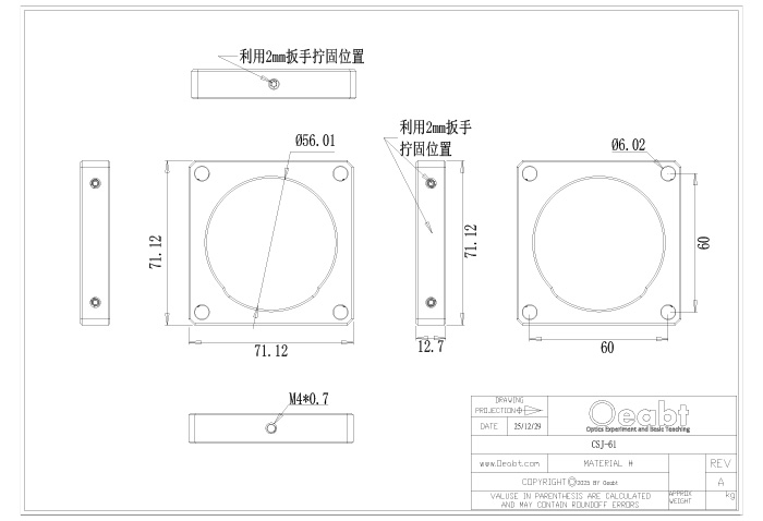 籠板設(shè)計(jì)用于將我們的透鏡套筒或延長(zhǎng)管滑入籠板中,并通過(guò)尼龍頂絲固定套筒外徑。