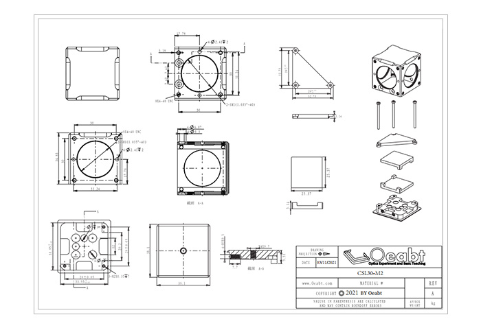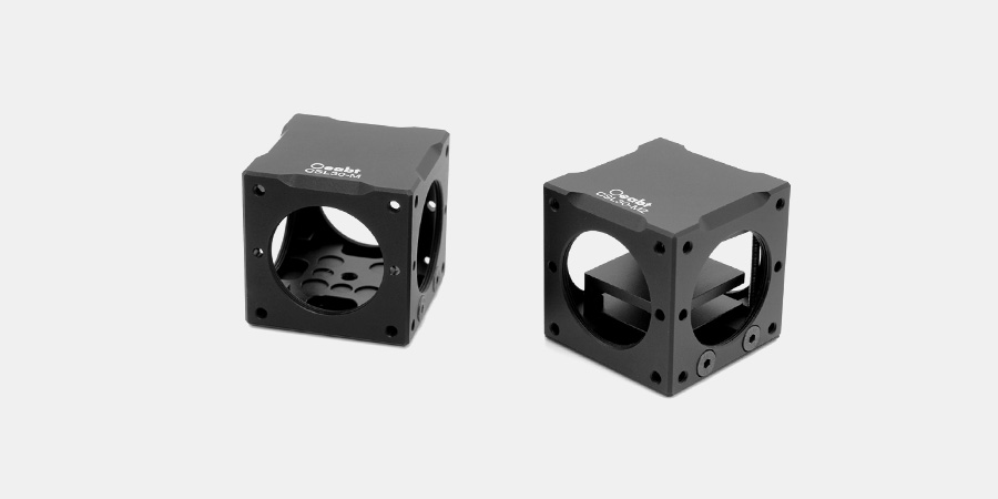 30mm籠式立方體搭建包括棱鏡、分束器和其他產(chǎn)生90°光路偏移的光學(xué)元件。用于將20mm/25 mm/1英寸的分束立方或直角棱鏡安裝到30mm籠式系統(tǒng)中,起到籠式系統(tǒng)搭建轉(zhuǎn)接,保護(hù)鏡片的作用。