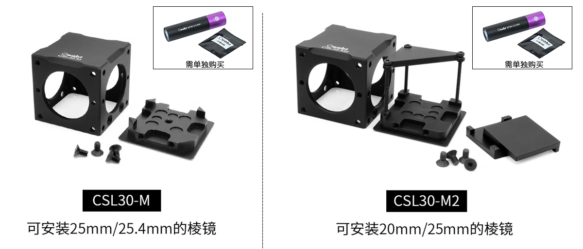 ? 直接安裝20mm/25mm/一英寸的分束立方和25mm直角棱鏡;