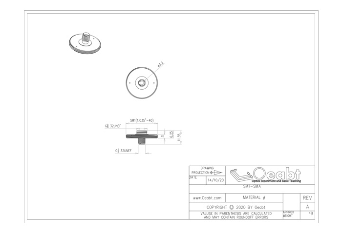 SM1-SMA |?螺紋類型:SM1(1.035”-40)外螺紋;?規(guī)格:?26*11.4mm;?重量:5.6g;